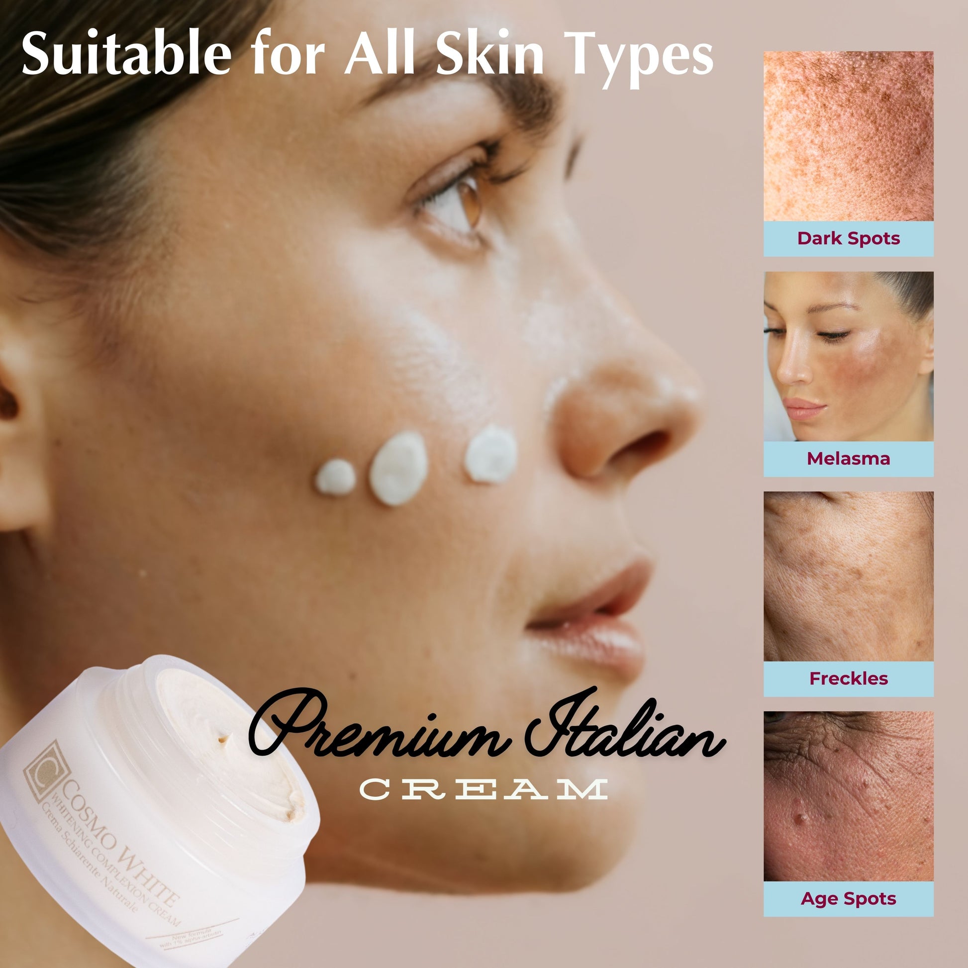 Cosmo White is the best anti-hyperpigmentation cream I've ever used. My chloasma has diminished, and my complexion looks flawless. Thank you for this amazing product!